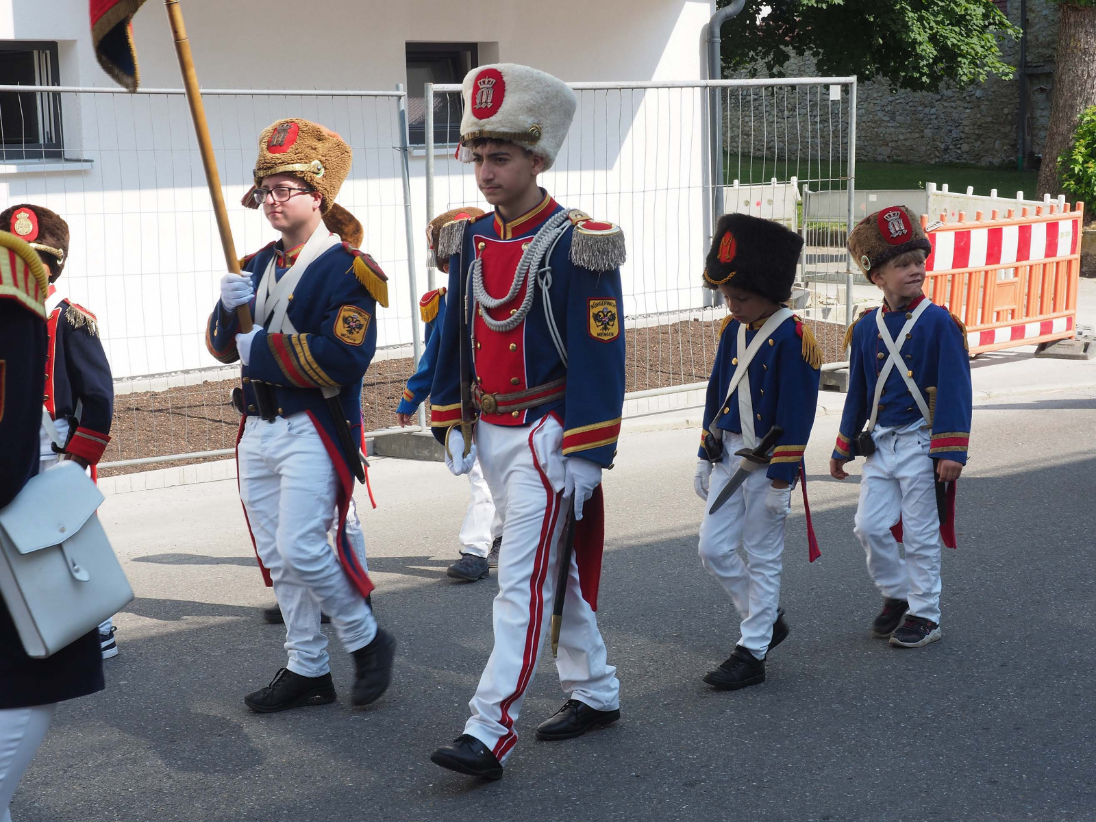 Nahezu eineinhalb Kilometer führte der Festumzug durch die Altstadt. Oberleutnant Joachim Krezdorn vertrat Major Georg Bacher als Kommandant, da dieser in seiner Funktion als Stellvertreter des Landeskommandanten die Parade vor der Ehrentribüne abnahm. Als Schlusslicht mit der Nummer 61 durften wir den grandiosen Festzug krönen, und nach einigen geselligen Stunden mit vielen Kameraden aus anderen Garden und Wehren ging es unter kräftigem Gesang Richtung Heimat.