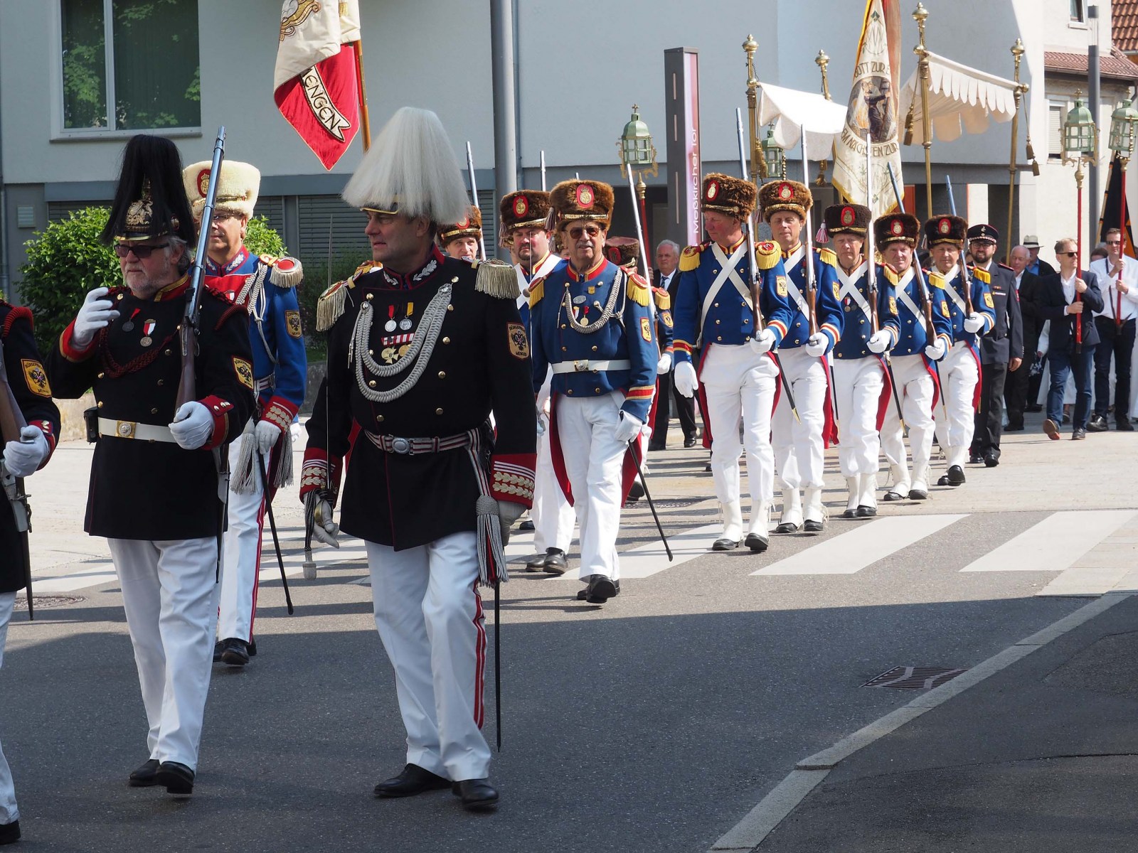 Zur Feier des Jubiläums reiste die Bürgerwache Mengen zu den Kameraden ins württembergische Allgäu, und nahm am Festgottesdienst und am Umzug teil.