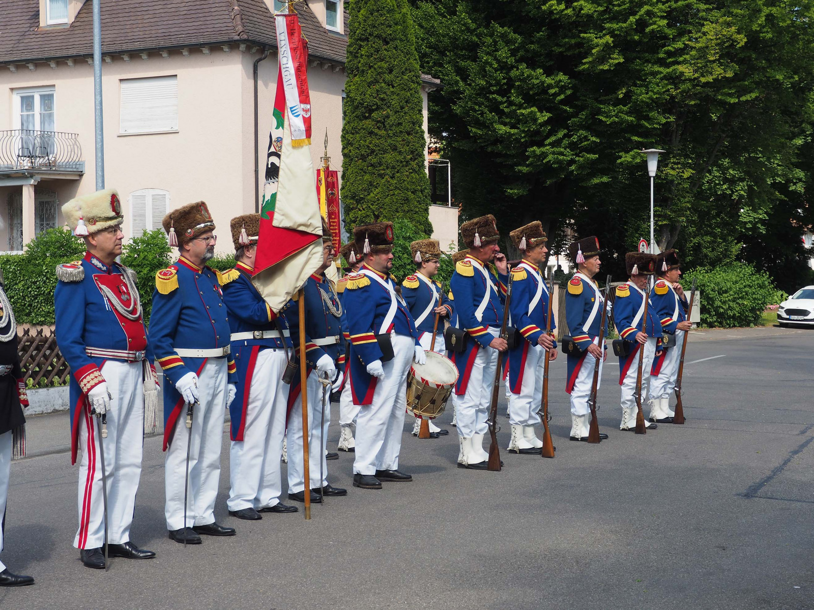 Zur Feier des Jubiläums reiste die Bürgerwache Mengen zu den Kameraden ins württembergische Allgäu, und nahm am Festgottesdienst und am Umzug teil.