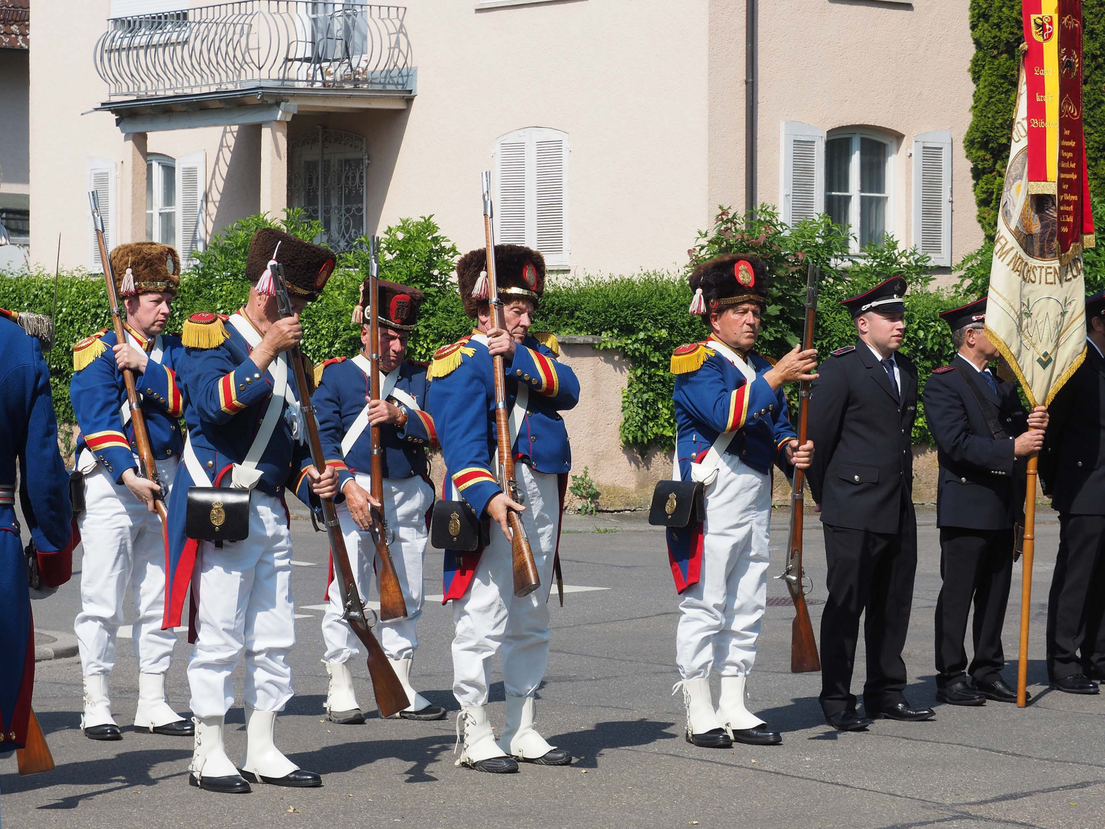 Zusammen mit den Garden und Wehren aus Mittelbiberach, Dietenheim, Esslingen, Trochtelfingen, Bad Saulgau, Rottenburg, Ehingen, Munderkingen, Crailsheim, Schwäbisch Hall, Lauchheim, Sigmaringen, Hüttlingen, Hechingen, Waldburg, Ochsenhausen und Riedlingen haben wir das historische Bürgerwehrwesen im Landesverband beim Großen Zapfenstreich und beim Festumzug mit beiden Fahnenrotten vertreten.