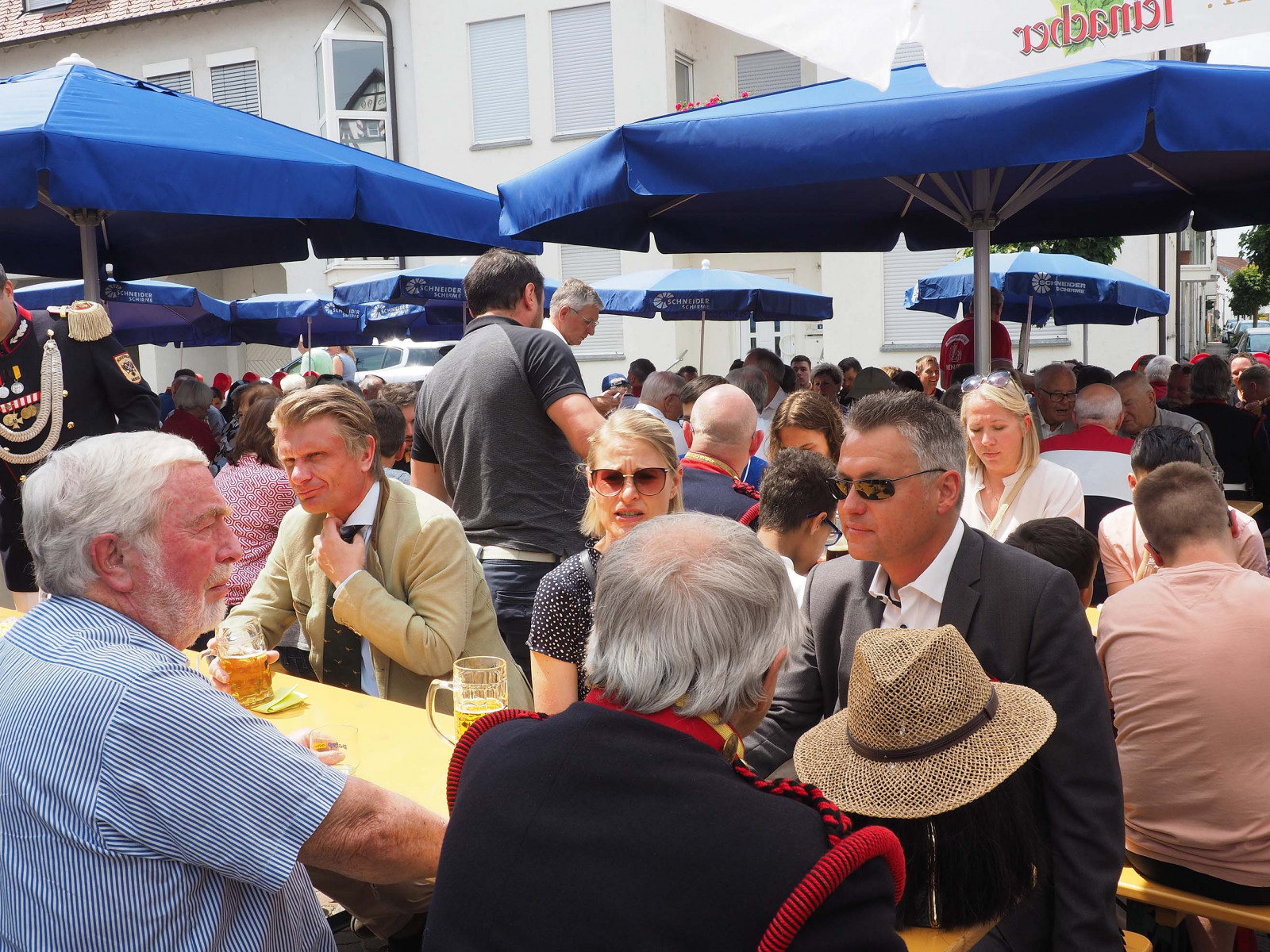 Im Anschluss an die Prozession durch die Stadt hat die Bürgerwache auf dem Platz vor dem Vereinsheim und der Martinskirche zu einem gemütlichen Beisammensein bei Frühschoppen und Mittagessen eingeladen. Für viele Bürgerinnen und Bürger der Stadt und dem Umland war dies mit ein Zeichen, ihre Verbundenheit mit der Wehr zu bezeugen. Frühsommerliches Wetter tat sein Übriges dazu, dass alle Plätze rasch besetzt waren und noch zusätzlich Tische und Bänke aufgestellt werden mussten. Durchreisende Radfahrerinnen und Radfahrer nutzten ebenfalls die Gelegenheit, sich von der Gardeküche mit vorzüglichen Speisen und Getränken für die Weiterfahrt auf dem Donau-Radwanderweg zu stärken, und sich vom Musikzug unterhalten zu lassen. Alles in allem wieder ein erfolgreiches Fest.