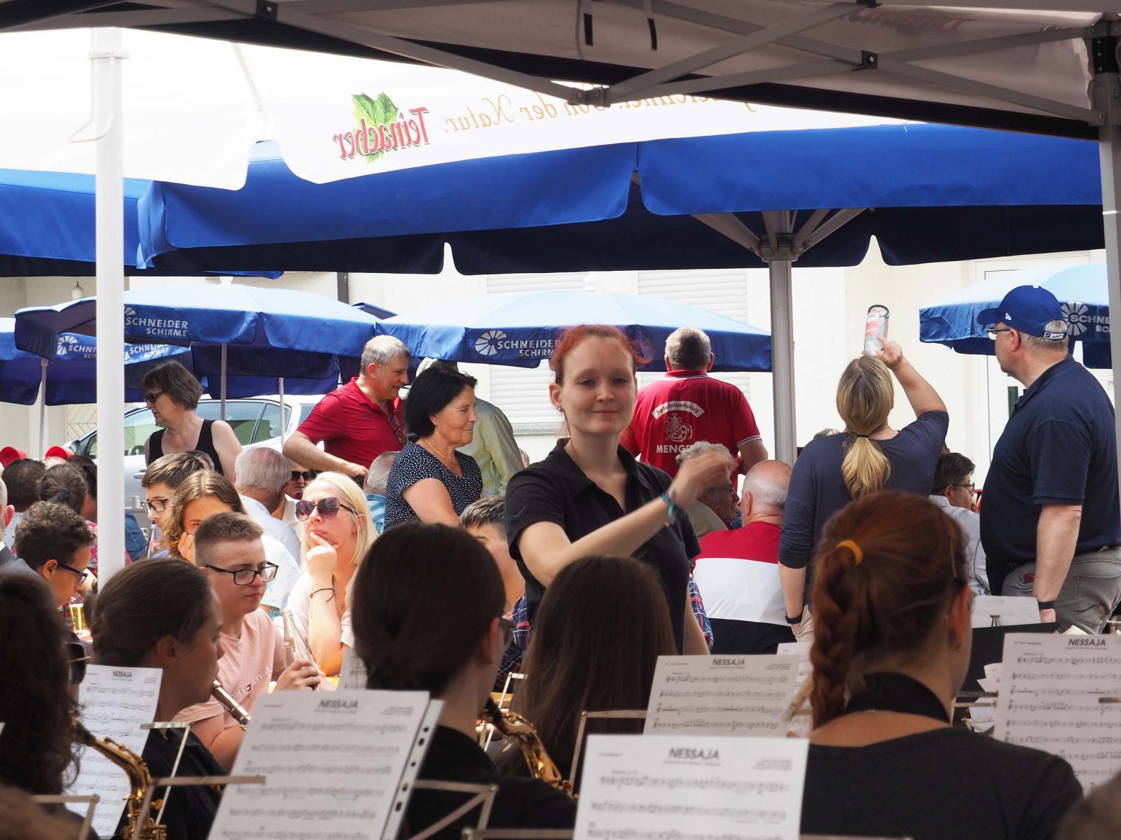 Im Anschluss an die Prozession durch die Stadt hat die Bürgerwache auf dem Platz vor dem Vereinsheim und der Martinskirche zu einem gemütlichen Beisammensein bei Frühschoppen und Mittagessen eingeladen. Für viele Bürgerinnen und Bürger der Stadt und dem Umland war dies mit ein Zeichen, ihre Verbundenheit mit der Wehr zu bezeugen. Frühsommerliches Wetter tat sein Übriges dazu, dass alle Plätze rasch besetzt waren und noch zusätzlich Tische und Bänke aufgestellt werden mussten. Durchreisende Radfahrerinnen und Radfahrer nutzten ebenfalls die Gelegenheit, sich von der Gardeküche mit vorzüglichen Speisen und Getränken für die Weiterfahrt auf dem Donau-Radwanderweg zu stärken, und sich vom Musikzug unterhalten zu lassen. Alles in allem wieder ein erfolgreiches Fest.