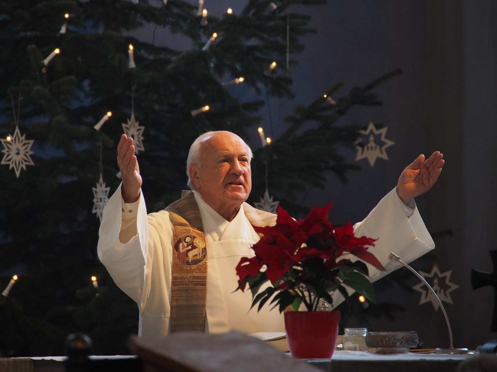 Zur großen Freude durfte der Feldkurat der Bürgerwache, Pfarrer i. R. und Dekan a. D. Heinz Leuze mal wieder in alleiniger Zelebration die Eucharistie feiern. Ihm assistierten Ministranten aus dem Spielmannszug. Den musikalischen Part erbrachte der Musikzug von der Orgelempore aus.