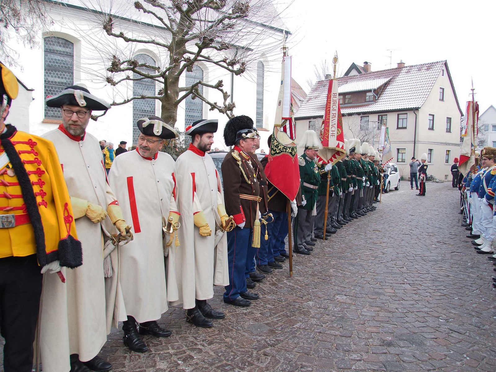 Eine Ehrensache war es auch, nach dem langen Fasnetssonntag am Montagmorgen rechtzeitig vor der Martinskirche parat zu stehen, um beim Handwerkerjahrtag die Mitglieder nach dem Jahrtagsgottesdienst zur weltlichen Feier ins Gasthaus Sonne zu begleiten.