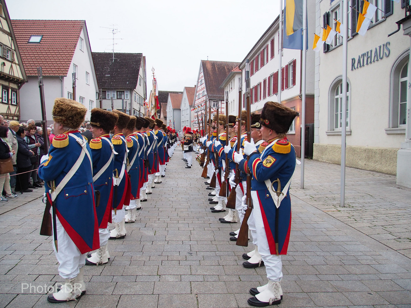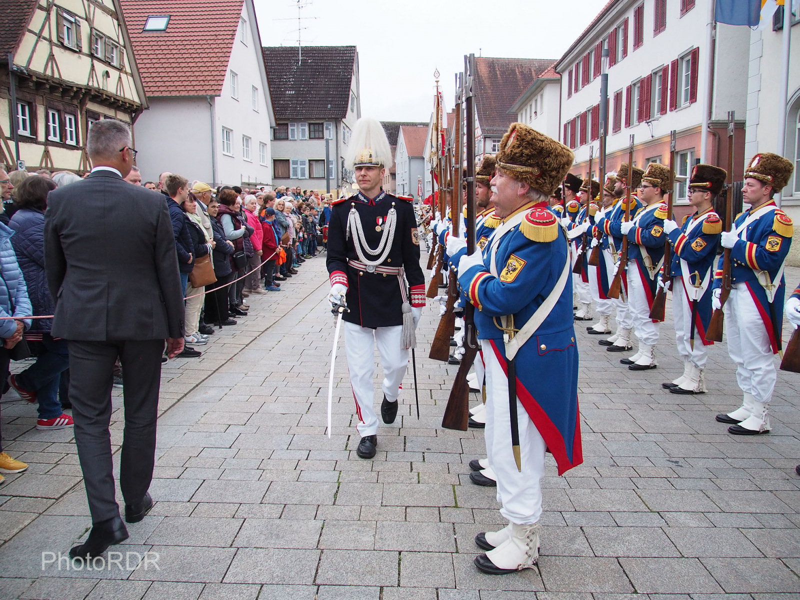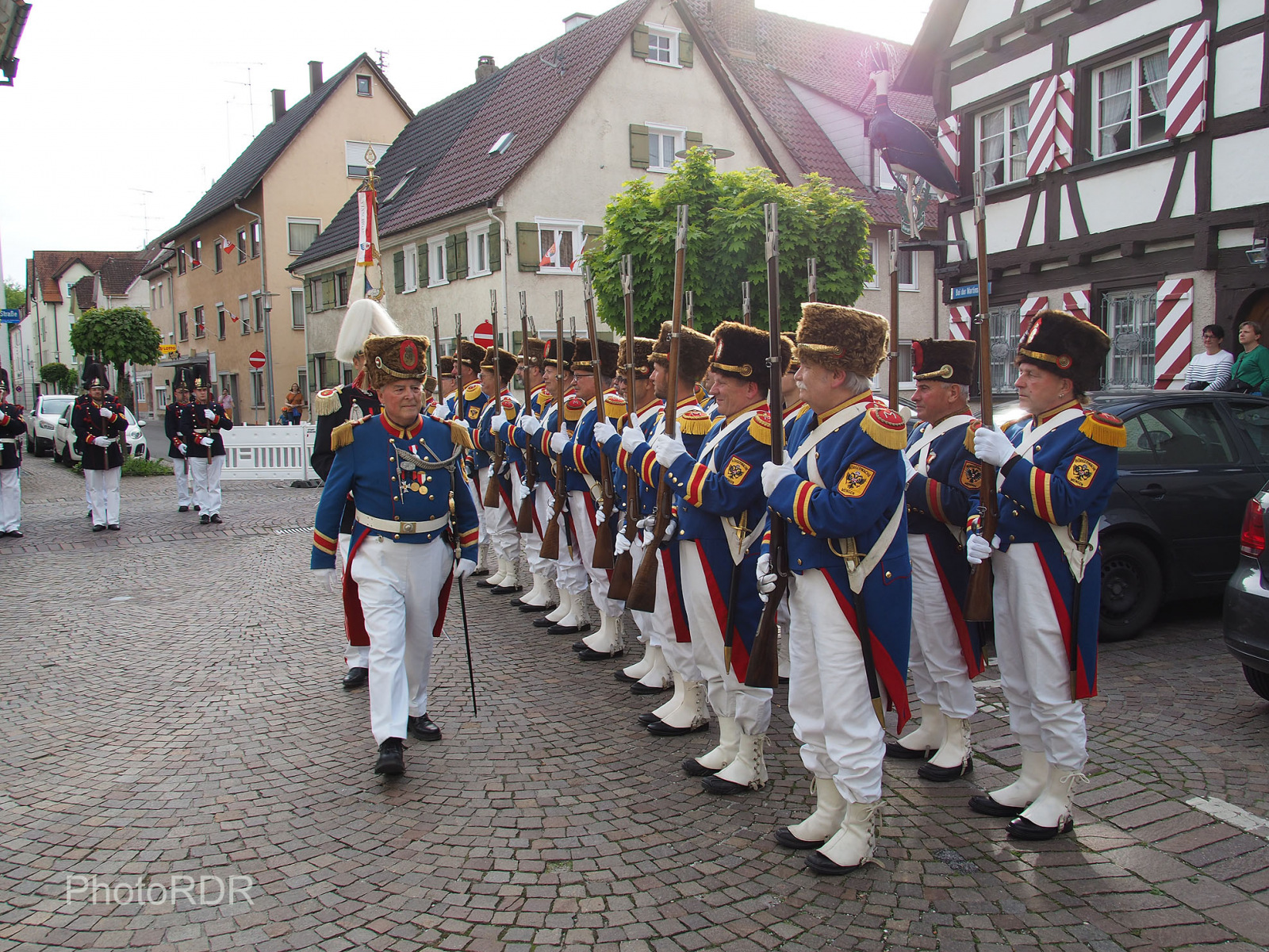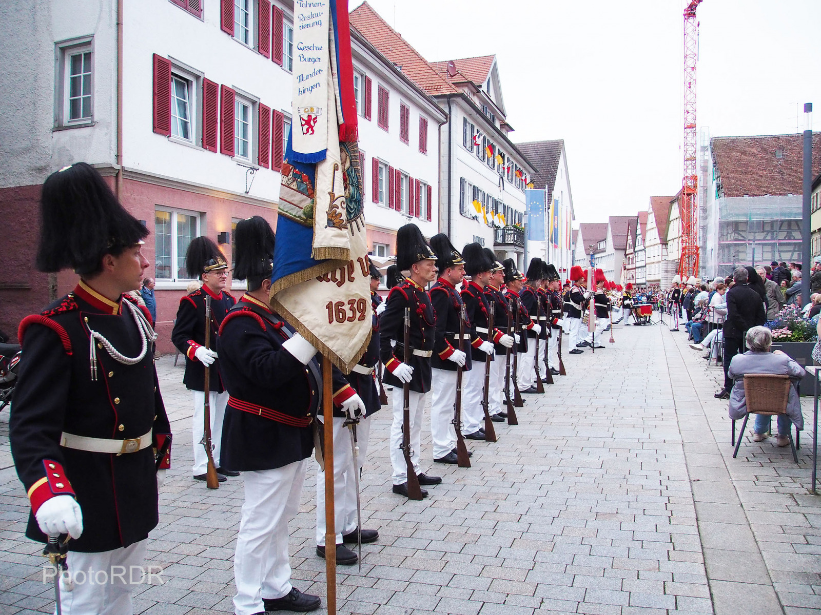 Zusammen mit den Garden und Wehren aus Mittelbiberach, Dietenheim, Esslingen, Trochtelfingen, Bad Saulgau, Rottenburg, Ehingen, Munderkingen, Crailsheim, Schwäbisch Hall, Lauchheim, Sigmaringen, Hüttlingen, Hechingen, Waldburg, Ochsenhausen und Riedlingen haben wir das historische Bürgerwehrwesen im Landesverband beim Großen Zapfenstreich und beim Festumzug mit beiden Fahnenrotten vertreten.