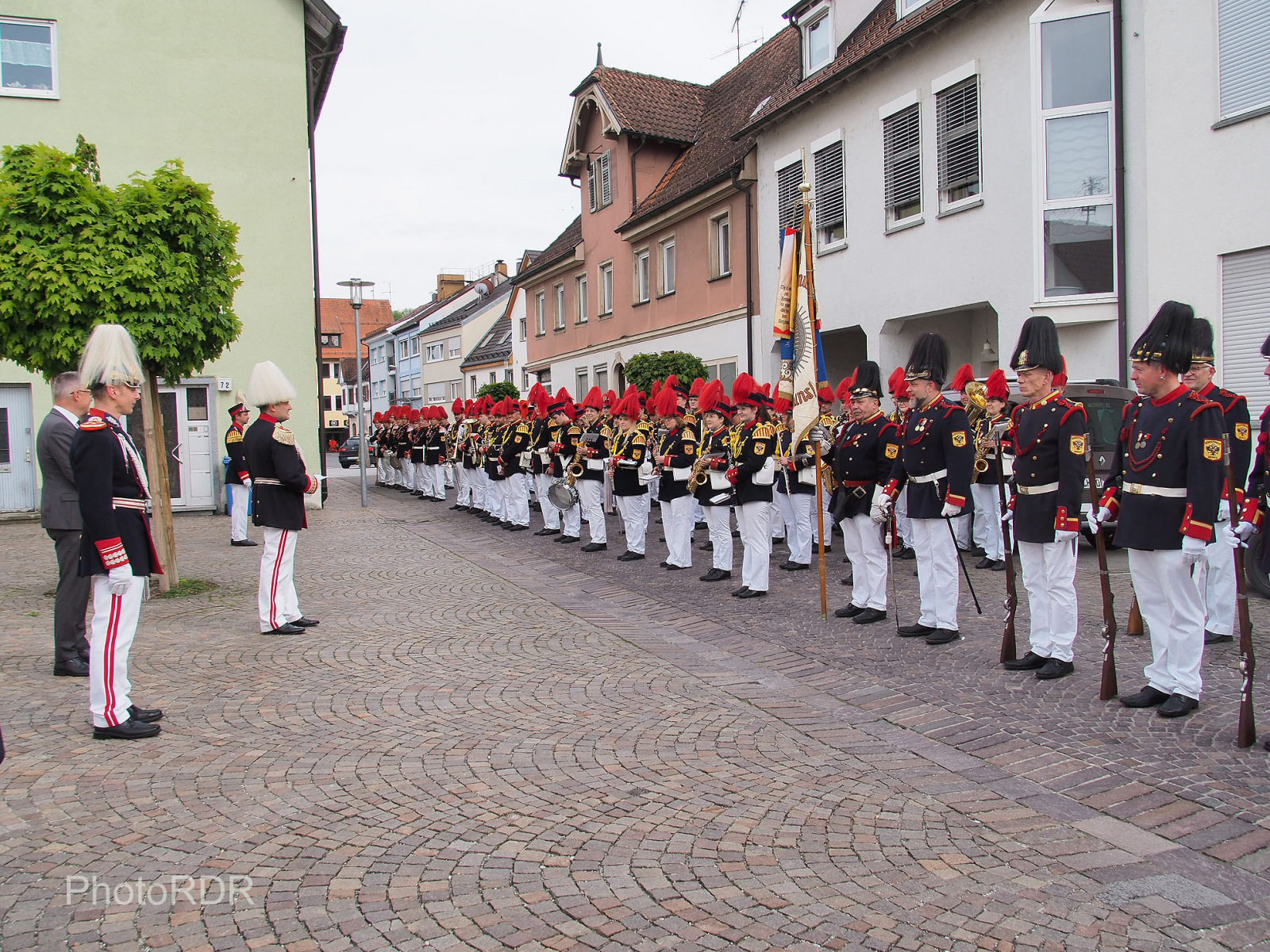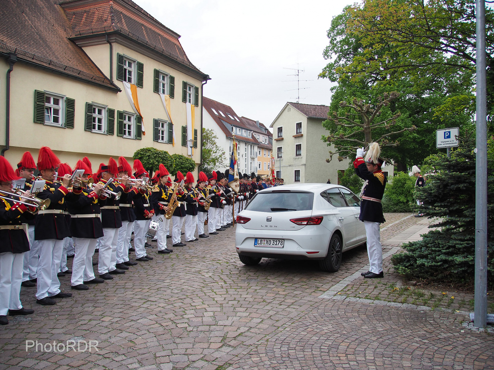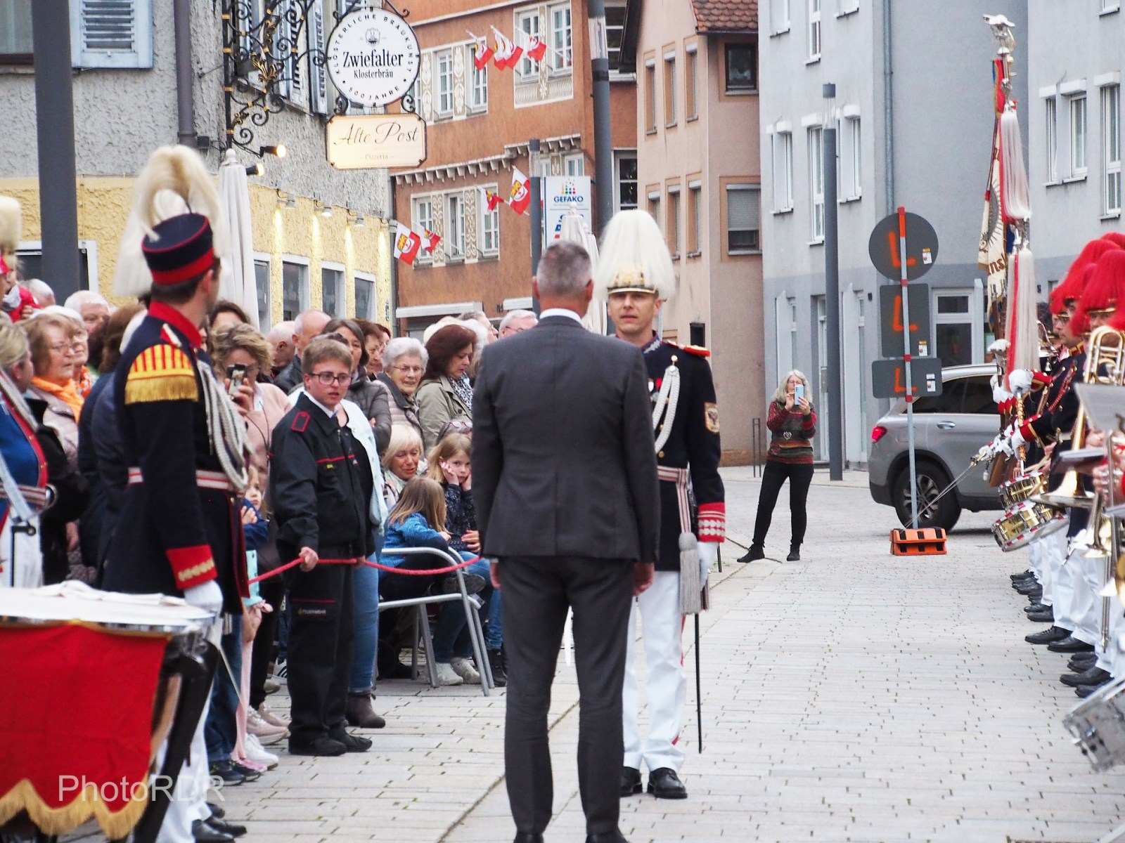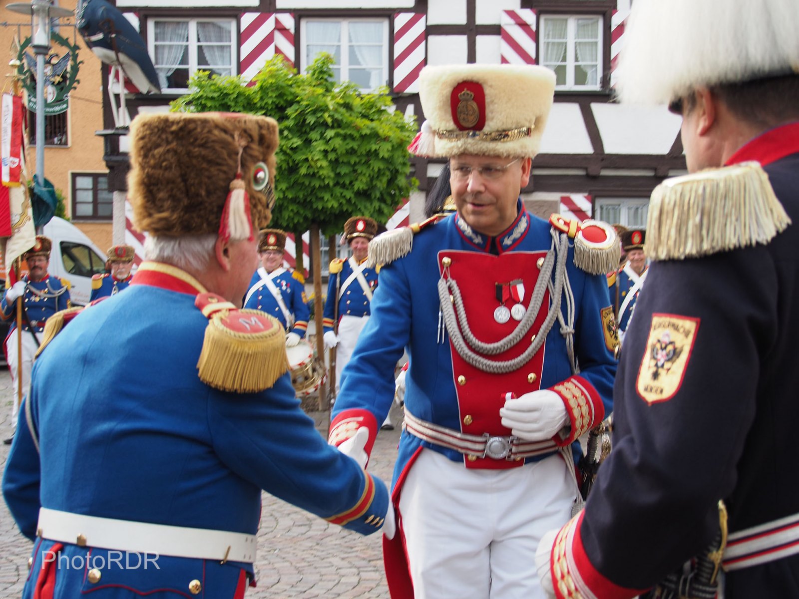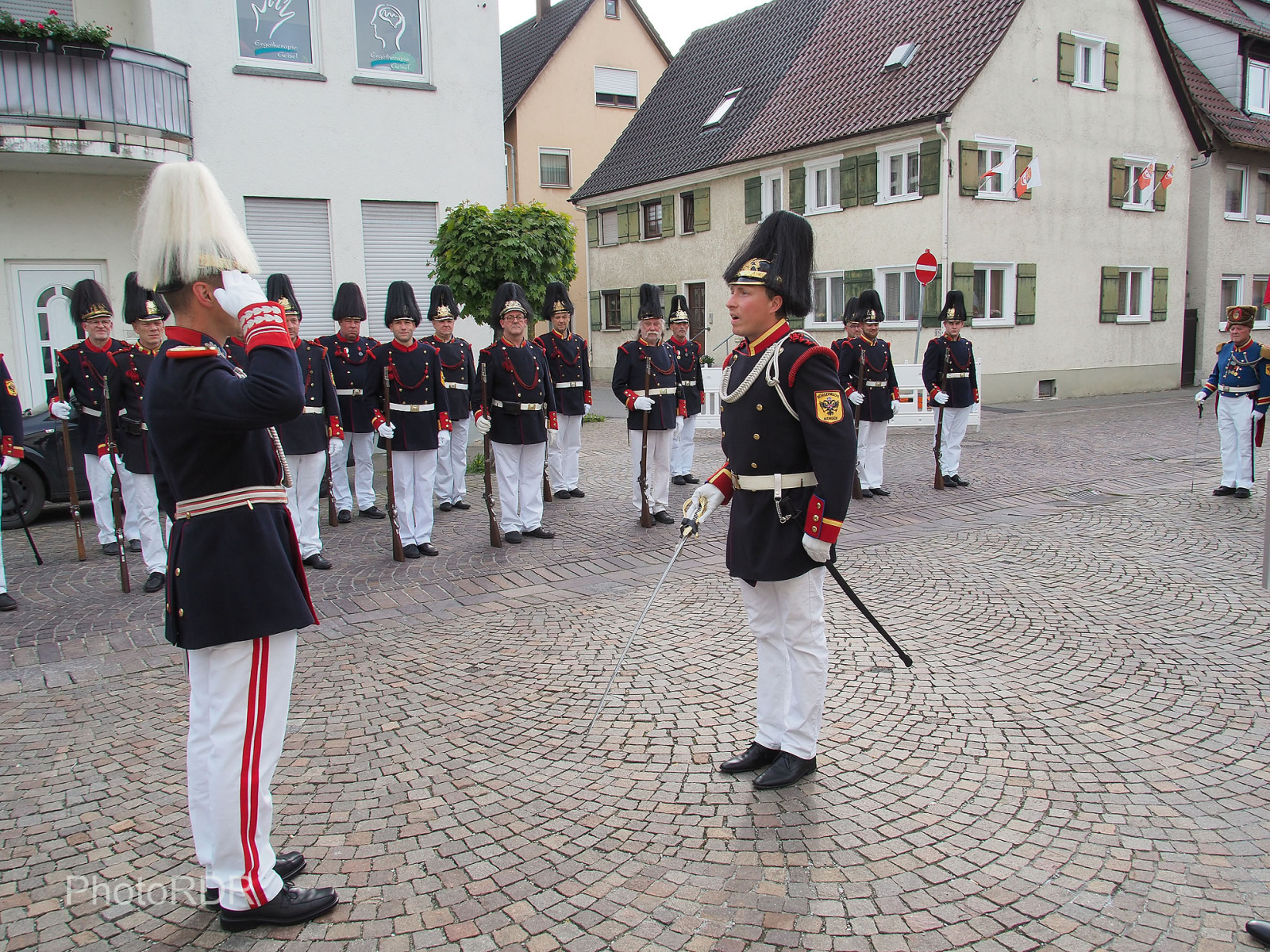 Zusammen mit den Garden und Wehren aus Mittelbiberach, Dietenheim, Esslingen, Trochtelfingen, Bad Saulgau, Rottenburg, Ehingen, Munderkingen, Crailsheim, Schwäbisch Hall, Lauchheim, Sigmaringen, Hüttlingen, Hechingen, Waldburg, Ochsenhausen und Riedlingen haben wir das historische Bürgerwehrwesen im Landesverband beim Großen Zapfenstreich und beim Festumzug mit beiden Fahnenrotten vertreten.