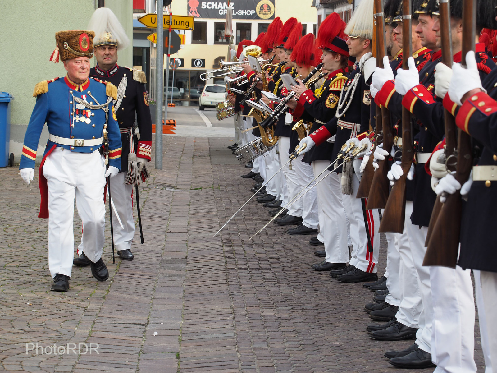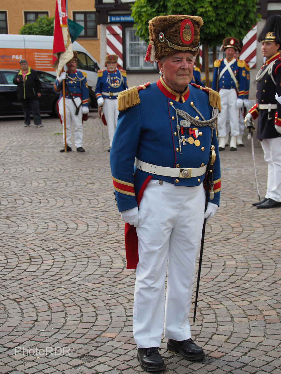 Nahezu eineinhalb Kilometer führte der Festumzug durch die Altstadt. Oberleutnant Joachim Krezdorn vertrat Major Georg Bacher als Kommandant, da dieser in seiner Funktion als Stellvertreter des Landeskommandanten die Parade vor der Ehrentribüne abnahm. Als Schlusslicht mit der Nummer 61 durften wir den grandiosen Festzug krönen, und nach einigen geselligen Stunden mit vielen Kameraden aus anderen Garden und Wehren ging es unter kräftigem Gesang Richtung Heimat.