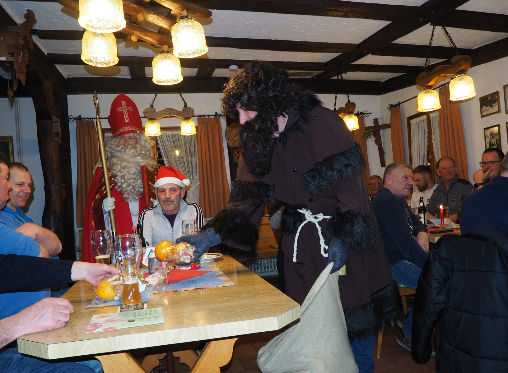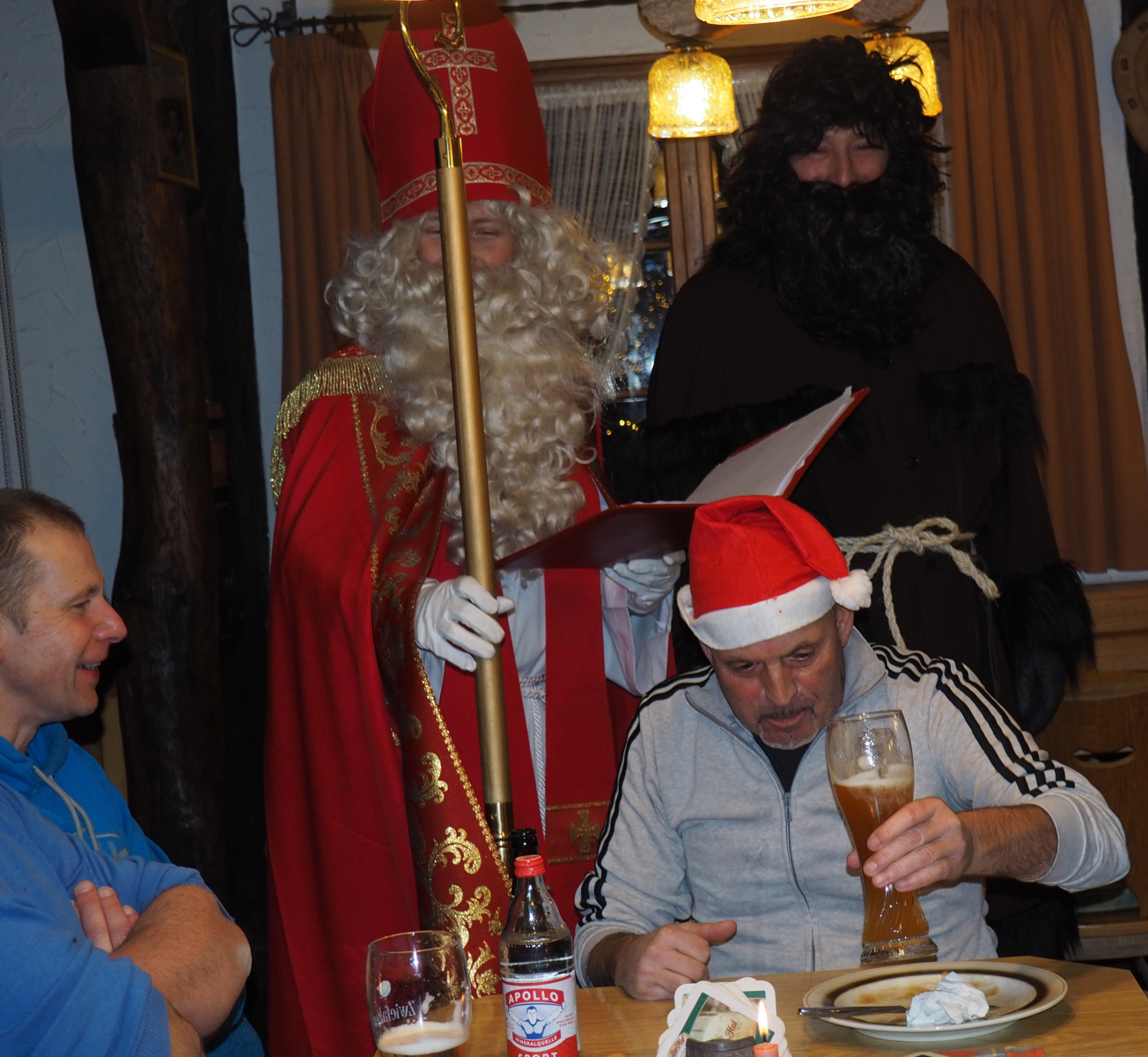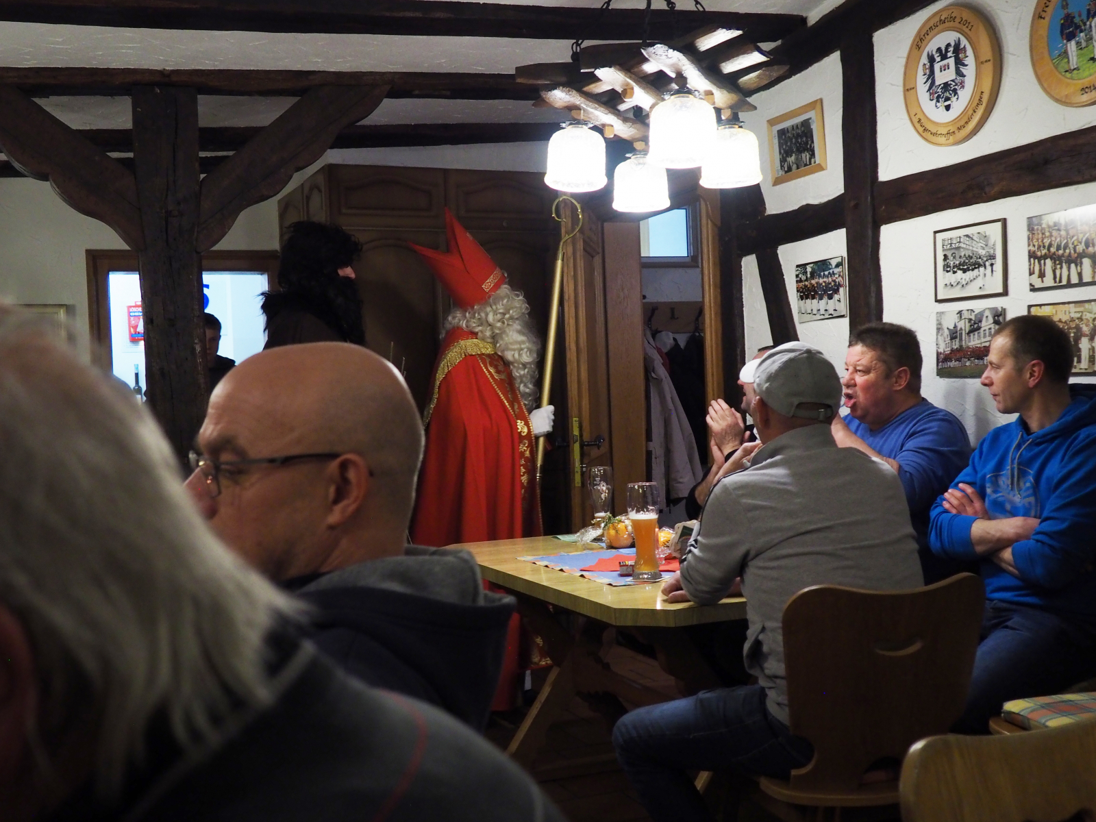 Den letzten Dämmerschoppen im Jahr nutzten der Nikolaus und sein Knecht Ruprecht zu einem Besuch bei den Bürgern im Bunten Rock. Im goldenen Buch des Heiligen war so manches an interessanten Ereignissen und Anekdoten verzeichnet. Eigenartig, dass sich der eine oder andere der Betroffenen so garnicht an seine Schandtaten erinnern konnte (eher wollte). Umso mehr erzeugte bei den Kameraden das Bekanntwerden Heiterkeit.