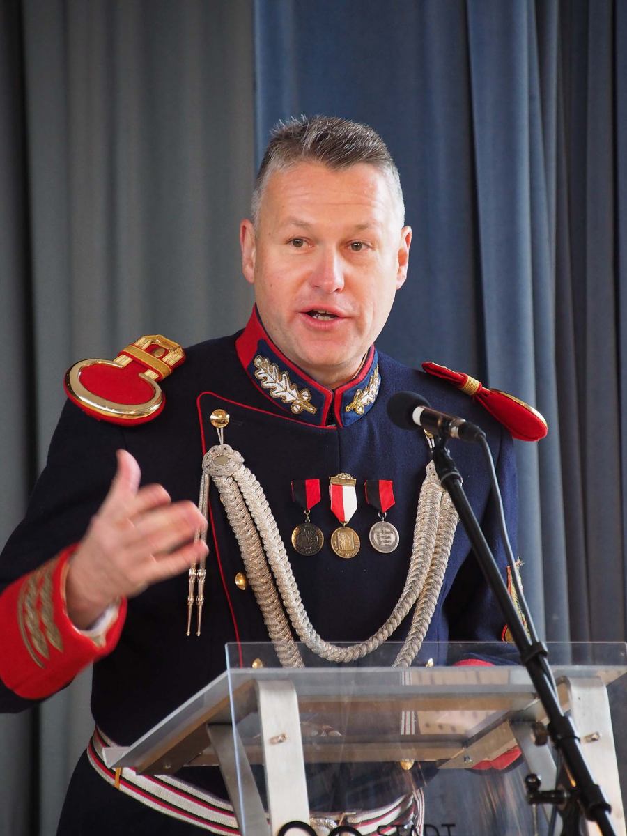 Mit Elan stieg der neue Kompaniefeldwebel Dietmar Hinderhofer in seinen Vortrag. Er fühle sich in seiner Aufgabe wohl und zeigte gleichzeitig auf, welche Schwerpunkte er in seiner Funktion als Spieß setzen wird. Vor allem, was Anzugsordnung und Sauberkeit der Uniform anbelangt.