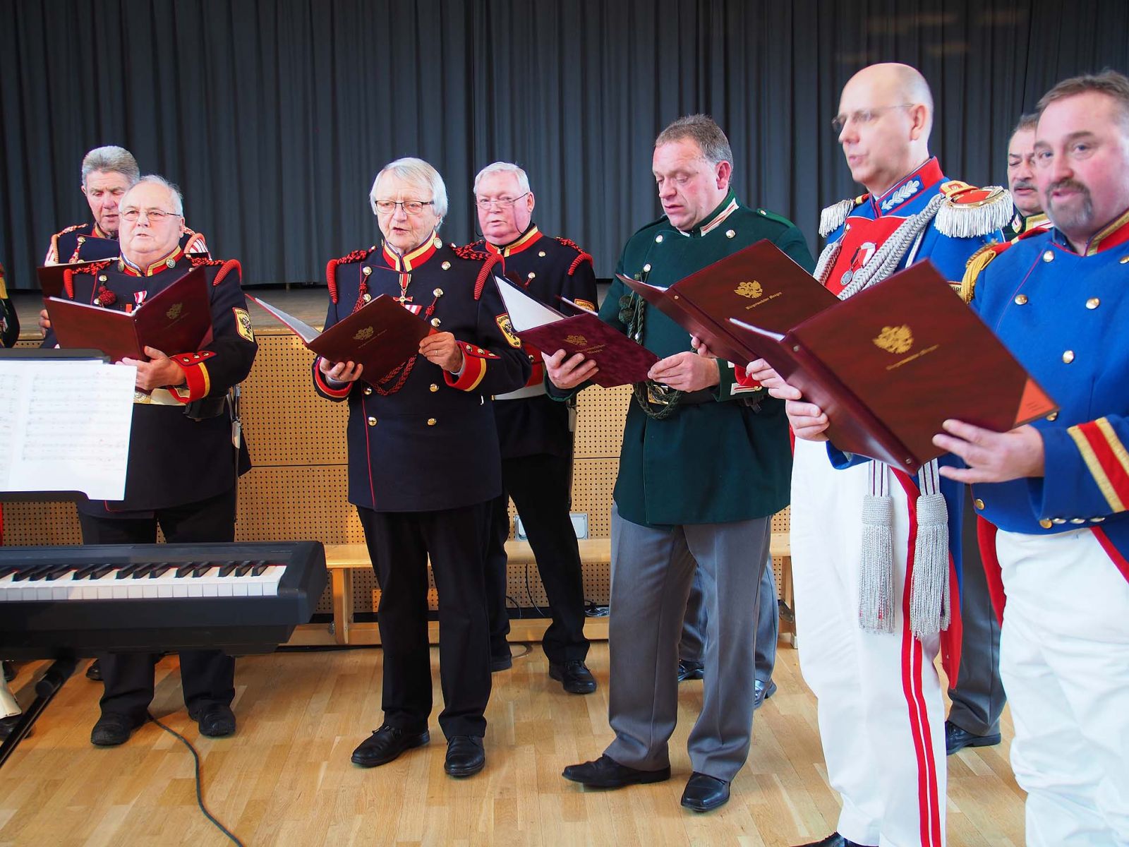Zum Schluss der Rechenschaftsberichte sprach Leutnant Manfred H. Müller als Tutor des Bürgerwachchors. Insgesamt elf Proben und Auftritte habe der Chor vorzuweisen. Er bedankte sich bei den Sängerkameraden für deren Treue und vor allem beim Chorleiter Josef Grüner. Mit nur noch 16 Mann sei der Chor dringend auf Zuwachs angewiesen. Müller machte darauf aufmerksam, dass der Chor der Bürgerwache Mengen ein Unikat sei in ganz Deutschland. Keine andere historische Bürgerwehr habe einen eigenen Chor, und damit es so bleibe, brauche dieser unbedingt Verstärkung. Dem fügte Kommandant Bacher ebenfalls seinen Aufruf hinzu und gab seiner Freude Ausdruck, selbst im Chor zu singen.